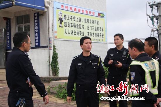 湛江新闻网讯: 按照交警支队的工作部署,近日,交警赤坎大队从辖区农村交通安全管理工作实情出发,组织各勤务中队深入辖区农村现场学习交流,进一步加强辖区农村劝导站建设工作,积极发挥交通劝导员的作用,促进各勤务中队加强学习交流。3月20日下午,赵文科教导员带队分别前往草苏村、文保村、大埠村等村庄检查交通安全管理工作落实情况,听取了各中队长、指导员的工作汇报,认真检查农村道路交通安全管理工作台账、上墙资料、资料架、劝导站建设等项目,并与村干部进行了交流,听取他们对大队开展农村交通安全管理工作的意见和建议。