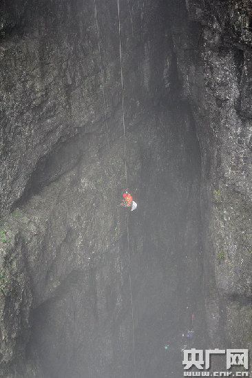 2015年04月04日,清明假期首日,湖南张家界天门山海拔1400余米的西线鬼谷栈道最险要地段鬼谷天堑处,清洁员绳降至崖底进行垃圾清扫,过往游客直呼如此惊险的工作不忍直视。景区用悬崖清洁工照片设置特殊宣传板,让游客以摁手印的方式承诺点赞,倡导文明旅游。