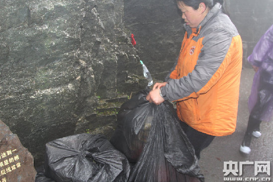 湖南张家界:清洁工悬崖绝壁捡垃圾