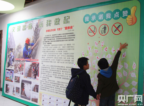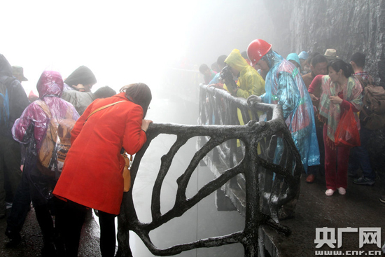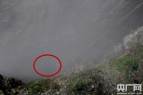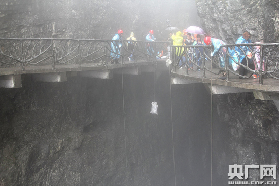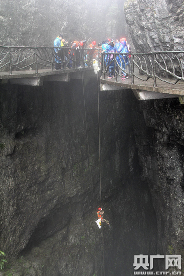 湖南张家界:清洁工悬崖绝壁捡垃圾