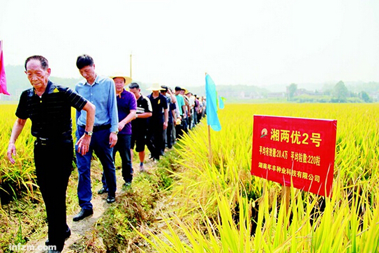 超级稻“Y两优900”经专家组验收,平均亩产1026.7公斤,创造了最新的水稻亩产世界纪录。这天是2014年10月10日。当时84岁的袁隆平站在湖南省红星村超级稻基地的稻田里宣布:“这标志着我国杂交水稻技术研究遥遥领先世界。”