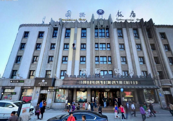 哈尔滨市公安局官方微博平安哈尔滨发布消息,2015年4月10日,哈尔滨市南岗区一购物广场内的金店发生一起盗窃案件,部分首饰被盗走,具体涉案金额正在统计中。图为哈尔滨国际饭店。