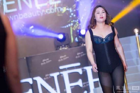 图为2015年4月6日,杭州,一场内衣时尚走秀场面火爆,60位大妈轮番上阵,身着紧身塑形内衣走T台,大秀身姿。