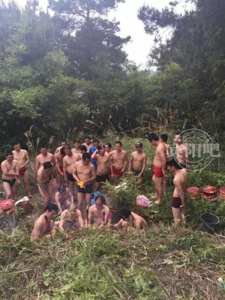 网曝广西宾阳男子集体裸上身穿短裤扫墓