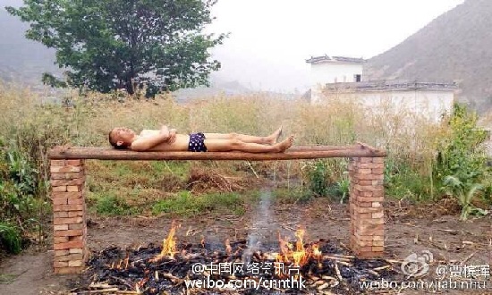 对于网传“半裸火烤癌细胞”一事,昨日上午,云南大理的当事人贾槟珲接受记者采访时表示,自己2013年被查出患上白血病,为治疗白血病,家里积蓄已被花光,没钱做手术,不得已像现在这样在高温下煎熬。