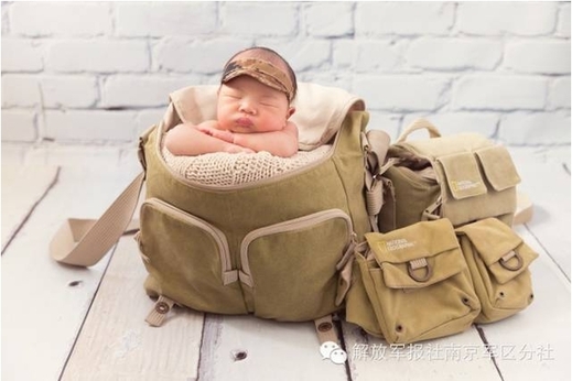 军人为儿子拍十日照 宝宝穿迷你军装萌化