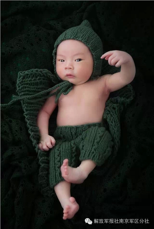 军人为儿子拍十日照 宝宝穿迷你军装萌化