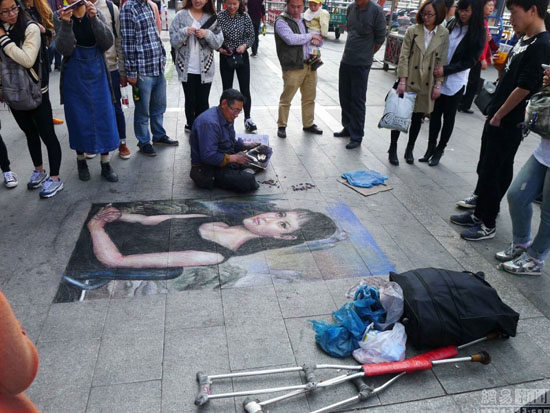 靠着反复地练习,从兰桂在地上画起龙、虎、山水来,甚至是气势雄伟的《开国大典》,都与原画相仿。他还爱画梵高、毕加索的画。《蒙娜丽莎的微笑》是他最拿手的,已经画了六七年,越画越像。
