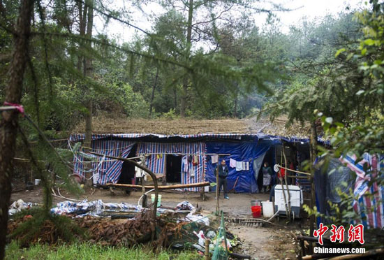 工人们合力在深山里搭建的住处,现在已经通水通电。