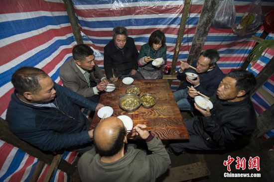 因为口味不同,江西工人先行吃饭,3个菜就是10余位江西人的晚餐。