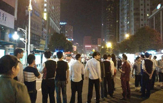 2010年2月8日凌晨5时许,位于罗湖区嘉滨路太平洋商贸大厦副楼外墙广告牌起火,六层楼高的广告牌瞬间被烧成灰,有顾客吓得穿着浴袍往大街跑,火灾未造成人员伤亡。图为桑拿中心的服务员们在现场维持秩序。