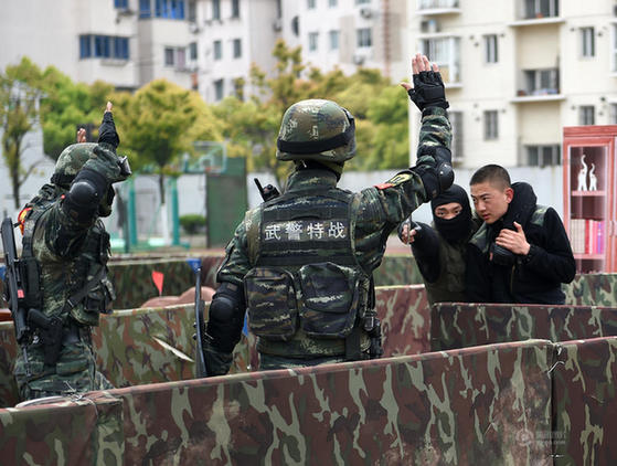上海公安武警实战化联合演练 女子特警首参加