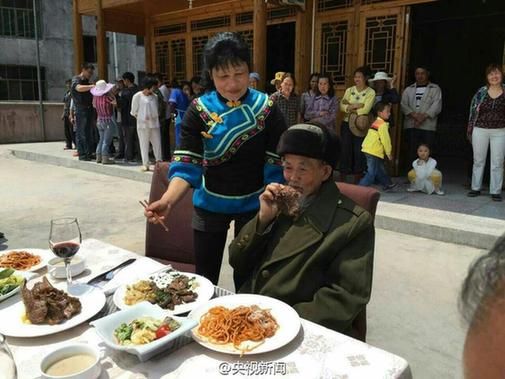 儿媳给92岁公公祝寿网购牛排大餐 大厨亲自服务