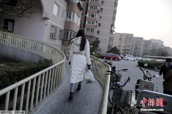 2015年2月10日,北京,网络女主播相公走回公寓。
