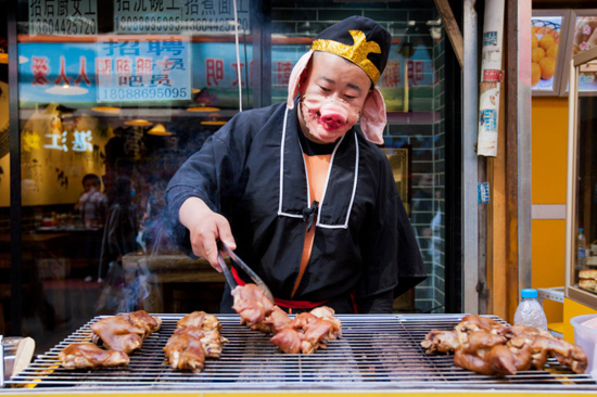 80后小伙扮“猪八戒”卖猪蹄 每天卖几千只