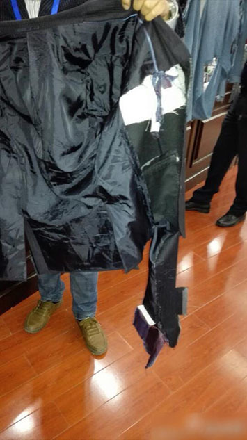 律师西服遭撕扯面目全非。