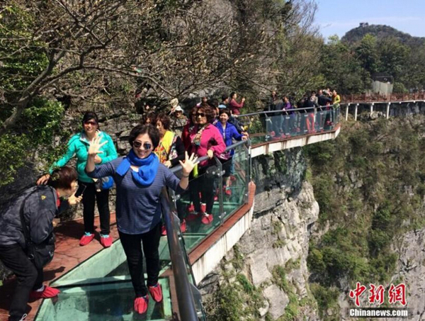 张家界景区海拔1400米玻璃栈道吓哭游客