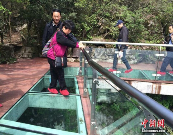 张家界景区海拔1400米玻璃栈道吓哭游客