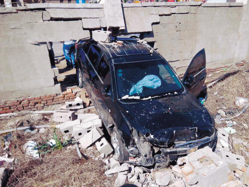 据沈阳晚报报道,2015年5月4日7时,沈阳市东陵路18甲-31号楼下,一辆黑色轿车从楼下的停车位开出。突然“咔嚓”一声,轿车撞上停车位前的小树,小树被齐根儿撞断!撞断小树后,黑色轿车继续向前行驶,连撞两辆面包车,直开到马路对面,将对面楼盘的围墙撞了一个大洞。