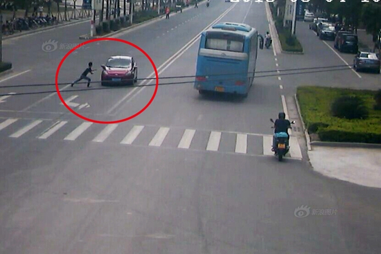 在事故现场,有几名现场目击的市民称该男子之前一直在十字路口附近徘徊,任其他车辆来往都不避让,还不时拿出手机来玩,并观察前方是否有车辆经过。在见到梁先生开着的小轿车过来时,该男子突然 “主动”地冲向梁先生的车,随后倒地不起。