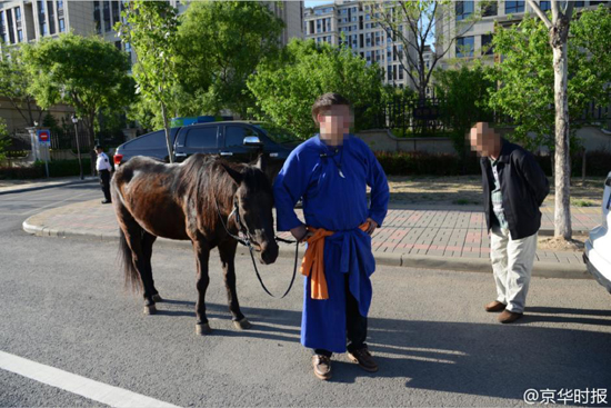 小区保安向记者证实,凌晨3点多,看见王先生将马拴在小区围栏外。“马太饿了,把小区一小片草坪都啃光了。”邻居冉先生称,4日清晨6点多,王先生与一出租司机协商,自己乘车并把马拴在车后慢慢驶去马场,但被拒绝。王先生称,最终自己骑一段、牵一段,于中午12点多将马匹送回。