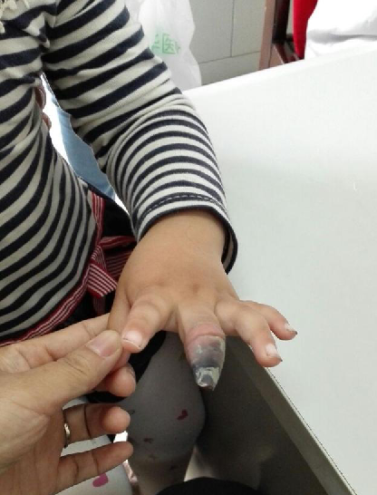 在采访中,雯雯奶奶告诉记者,事发后,她曾多次带着雯雯去有关医疗机构治疗,被告知受伤手指末端骨头尚好,只是肌肉已经坏死,并进行了一些伤口的消毒处理。“后来我们觉得不对头,就送到这边来看看了。“