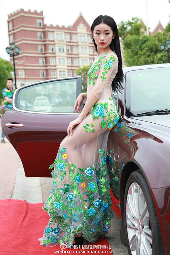 四川高校办毕业红毯秀 豪车入场堪比戛纳