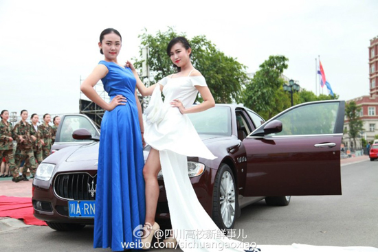 四川高校办毕业红毯秀 豪车入场堪比戛纳