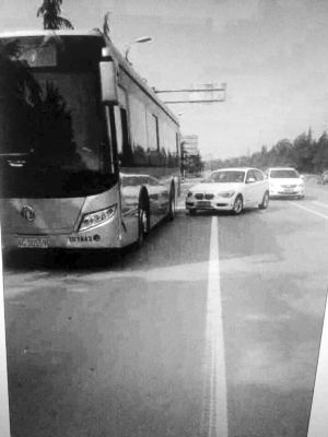 记者联系上了发帖网友,他告诉记者,事发当时他从现场路过,当时宝马车和公交车都是沿着金山南路同向行驶的,宝马车在内车道,公交车在外车道。宝马车可能想变道到外车道去,而公交车不让,还是直往前开,结果宝马车头一下子撞到了公交车腰身上。