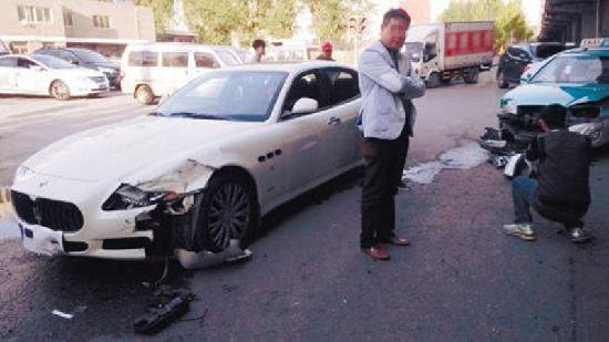 5月9日16时许,沈阳市铁西区揽军路发生交通事故,一辆转弯的出租车撞到了私家车,引来众多围观者,自认全责的女出租车司机单手捂着脸,在一旁默默落泪。驾驶出租车的是一名的姐,站在出租车旁悄悄落泪,用右手捂住了脸。围观者说:“刚才玛莎拉蒂司机问她三者险保了多少钱,她说30万,男司机说了句‘那不够修’。”