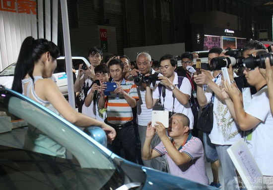 2014年8月17日,上海新国际博览中心的国际车展汇集了大量靓丽美女模特引摄友车友围观。