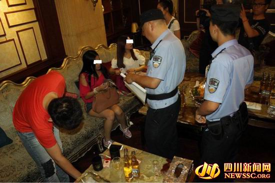 为有力防范、打击涉枪涉爆等犯罪活动,全力维护社会治安大局稳定,深入推进“平安成都”建设,5月19日,成都市公安局统一部署,全警行动,决定从即日起在全市范围内深入开展缉枪治爆社会治理行动。从19日晚21时起,全市集中清査行动正式展开。图为娱乐场所清查现场。