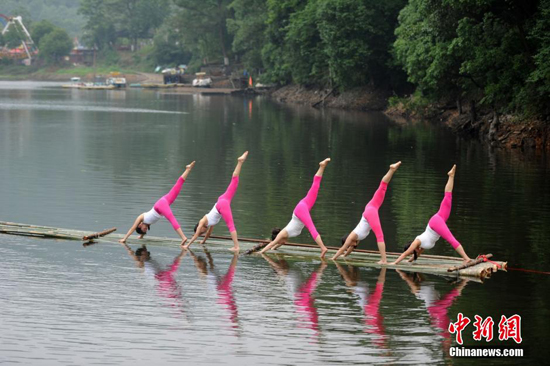长沙瑜伽达人上演水上瑜伽 秀优美身段