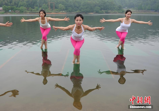 长沙瑜伽达人上演水上瑜伽 秀优美身段