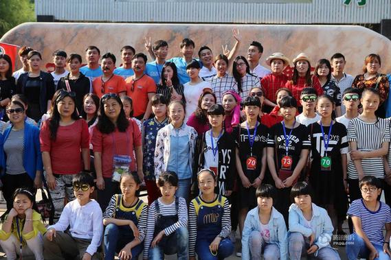 图为140对双胞胎200余人在一起大合影,让围观游客看的有点眼花。