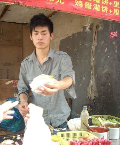烧饼帅哥,是在长沙的“堕落街”上卖烧饼的一位眉目清秀、年轻帅气的小伙。烧饼帅哥本名包建斌,身高186cm,1986年出生,河南信阳人。2009年3月,有网友在网上上传了一组“烧饼帅哥”的工作照,一时引来网友的热捧。