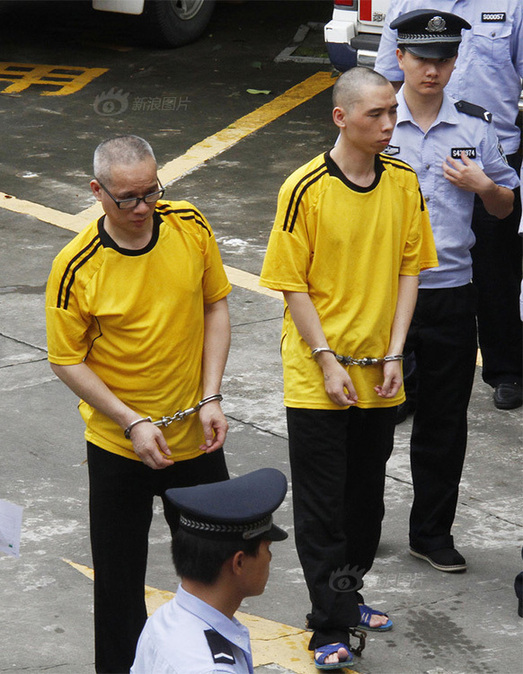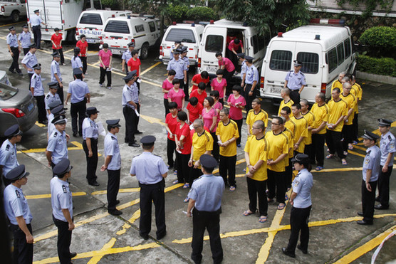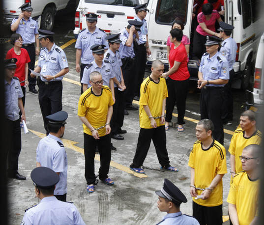 27日,东莞太子酒店老板梁耀辉(人称“太子辉”)等人被押往庭审现场。