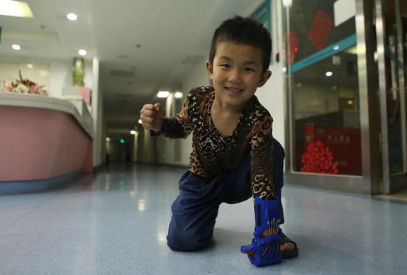 无手男童获得炫酷六一礼物 3D打印机械手义肢