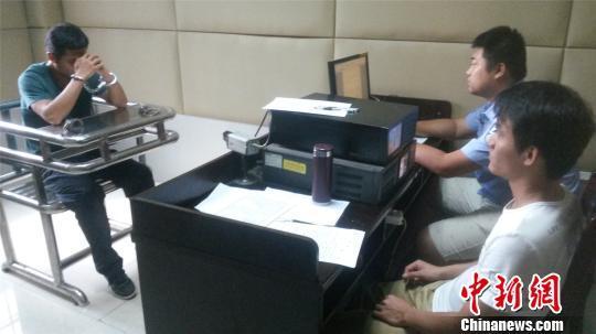 图为警方对嫌疑人秦某进行审讯。 陈方摄