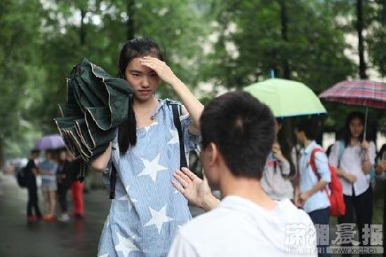 面对小权的表白,站在对面的佳佳用伞捂着脸,许久没有出声。此时同学们纷纷起哄,齐呼“在一起”。雨越下越大,小权没有打伞,伸手望着佳佳。约5分钟后,佳佳终于抬起头说:“我们一起等高考成绩出来,你不要淋雨了。”