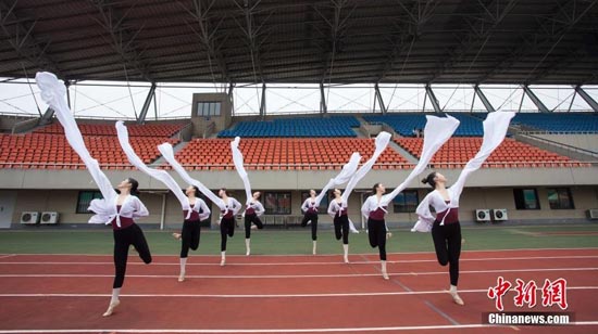 浙江师大舞蹈系学生拍一字马毕业照