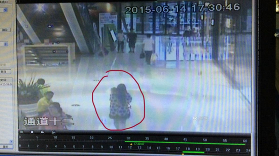 周先生是长沙某教育机构的老师,当天下午,他和爱人陈女士在万达广场内忙着举办一场儿童活动,5个月大的女儿梦梦离不开妈妈,只好让岳母抱到了活动现场。下午5点半,一名陌生女子来到现场,向抱小孩的家长们提出抱孩子的请求。梦梦的外婆以为这名女子是学校孩子的家长,便不加思索地让她抱了会。可眨眼间,女子便带着梦梦消失在了人群中。图为监控显示小孩被抱走时的画面。