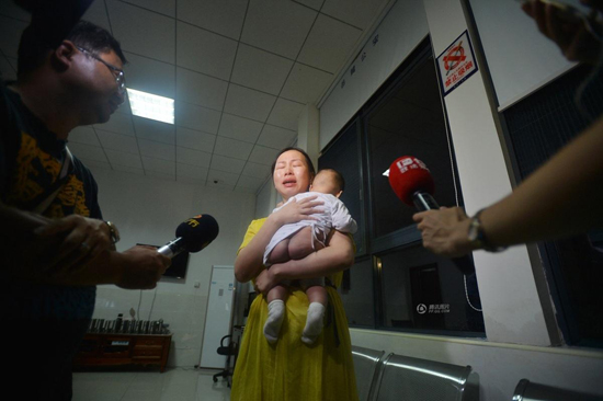 在民警的帮助下,周先生看了沿街监控,发现这名女子的踪迹,但当周先生开车追去时已无法确定女子行踪。而此时,梦梦被陌生人抱走的消息经微博、微信转发,一时间,全城网友的朋友圈里都是寻找梦梦的消息。两个小时后,民警接到一名娭毑报警说找到了女婴。图为6月14日晚8时许,长沙市公安局岳麓分局,妈妈讲述女儿丢失时泣不成声。