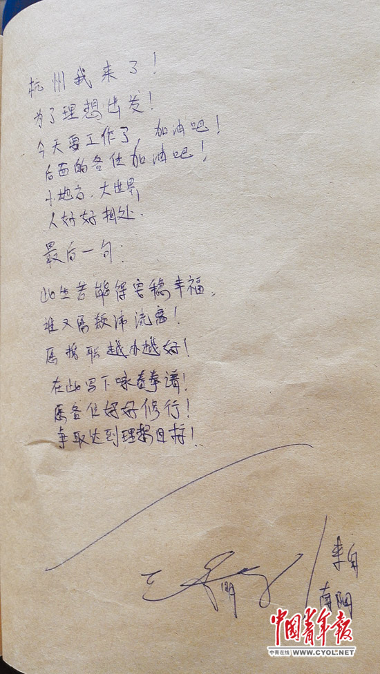 旅社的留言簿里,记录着很多年轻人离开时的心情。