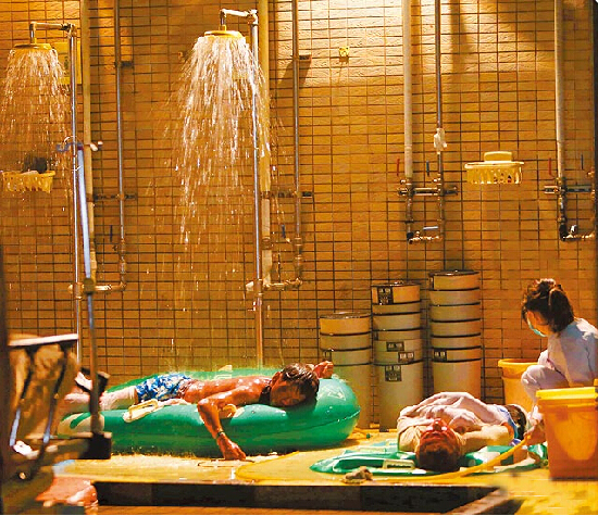 伤者利用冲水减轻痛苦。