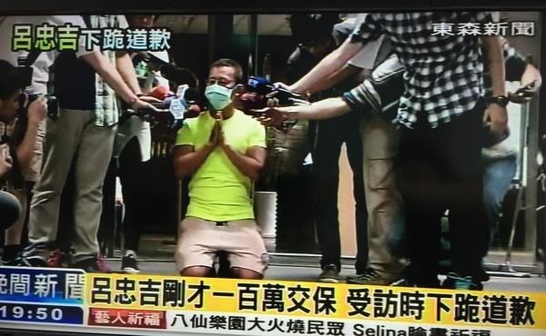 吕忠吉7点半步出士林地检署时,面对媒体时他当下下跪且并双手合十地再次道歉说:“对社会造成这么大的伤害,感到很抱歉。”吕忠吉表示,对于自己没有兼顾这么多细节十分抱歉,他没交代工作人员不能抽烟,但要注意有无人嗑药,只是因为太多地方要顾,自己不会待在同个地方太久。