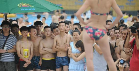 图为7月4日,2015全球比基尼小姐中国大赛华中赛区比赛现场。