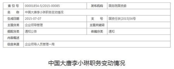 经研究,同意李小琳为中国大唐集团公司副总经理人选。