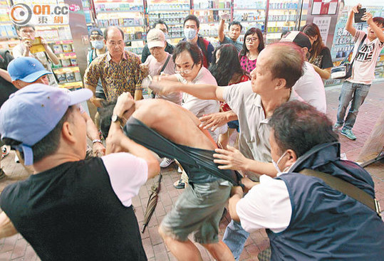 这批本土派成员自称“西洋菜南街反大妈唱蝗团”,挥舞港英旗,及写有“我不是中国人”的红色旗,并带同多款标语,批评近日有内地人在该区唱普通话“山歌”、“红歌”,又跳广场舞,声称这批内地大妈制造噪音,影响市容,“清洗”香港文化。