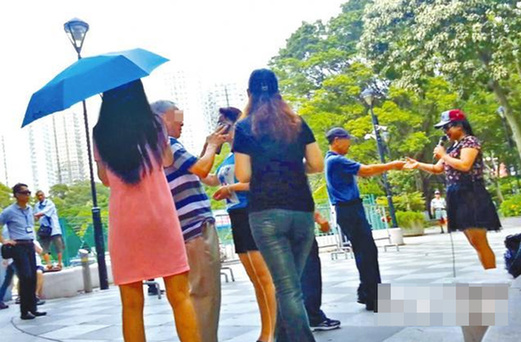 另外,一些媒体追踪这批在旺角跳舞的“大妈兵团”时发现,有不少香港人甚至会在观看她们表演时付钱打赏。一位80岁的姓郭的香港老爷爷就坦言,自己每天下午3时就会屯门公园听歌,“先后花了数万元”在这批大妈身上。图为领班英姐(右)一开腔,老翁即送上红包。